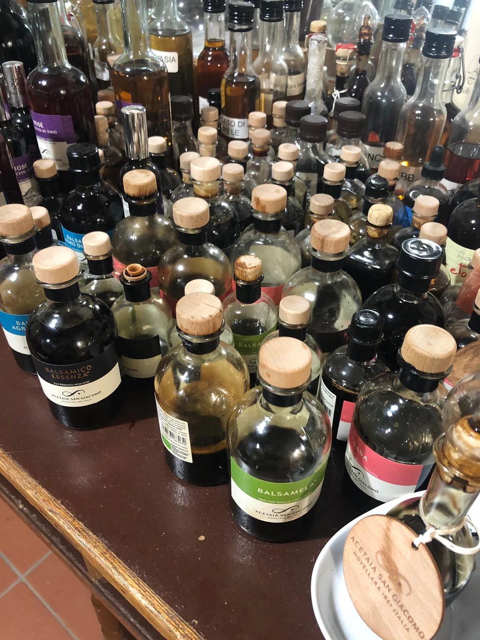 The tour includes a complete visit to the Acetaia (about 1 hour) and tasting of all the “cooked” products (Saba, BalsaMela, Agro di Mosto, Balsamico San Giacomo, Essenza San Giacomo, Signoria Gonzaga) plus all three Traditional Balsamic Vinegars from Reggio Emilia (Lobster label, minimum 12 years of ageing, Silver label 20 years, Gold label 25 years) and tasting of Raw (wine) Vinegars .